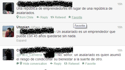 Añado parte de la conversación en la que prefiero mantener en el anonimato a la otra parte. Fijaros en el primer tweet: