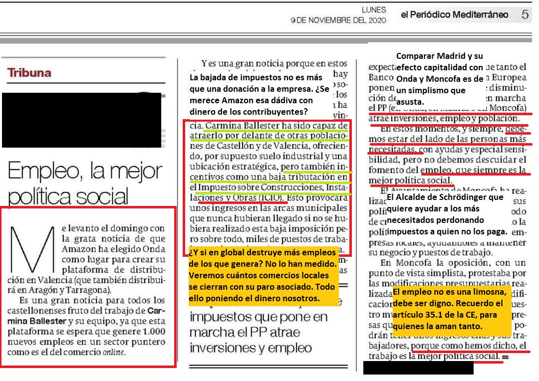 Si se piensa que esta empresa merece una serie de rebajas fiscales para que se instale en una determinada zona por la simple promesa de la «creación de 1.000 puestos de trabajo» es que se tiene un grado de cinismo digno de tratamiento médico. Veamos el artículo escrito por un alcalde del mismo partido al de la alcaldesa de Onda, el a partir de ahora Alcalde Schrödinger: